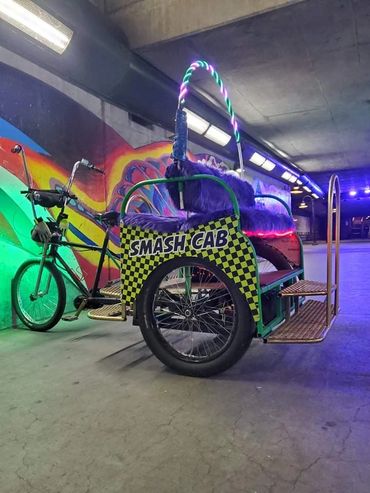 They're not merely bikes; they're Smash's Pedicabs! Each one is meticulously crafted and designed by Smash and his team. With his passion for pedicabs, he has infused his art and design into creating something so unique that they've become sought after by popular demand!